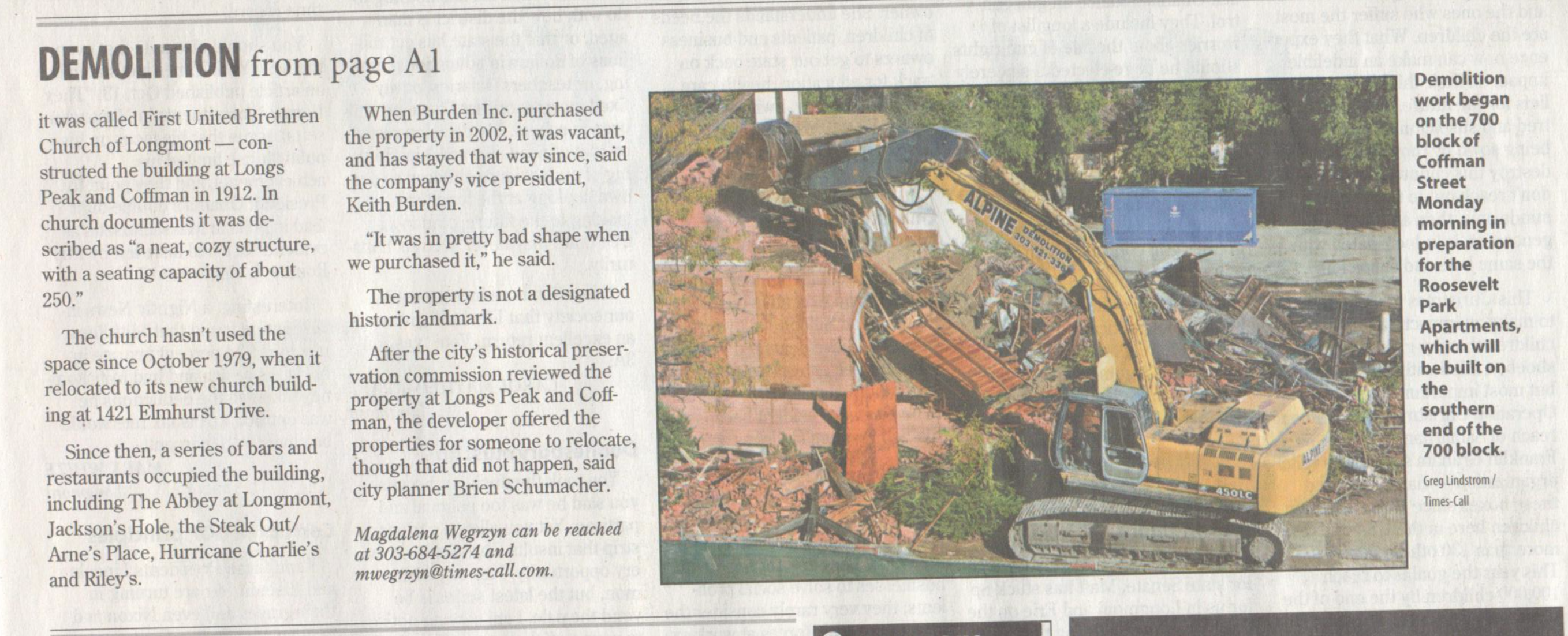 We’re very proud of having our demolition projects covered by the news. The Longmont Times-Call- has followed our controlled demolitions and Demolition Company for years, and we love being a part of Longmont, Colorado’s History and Future.