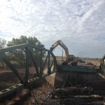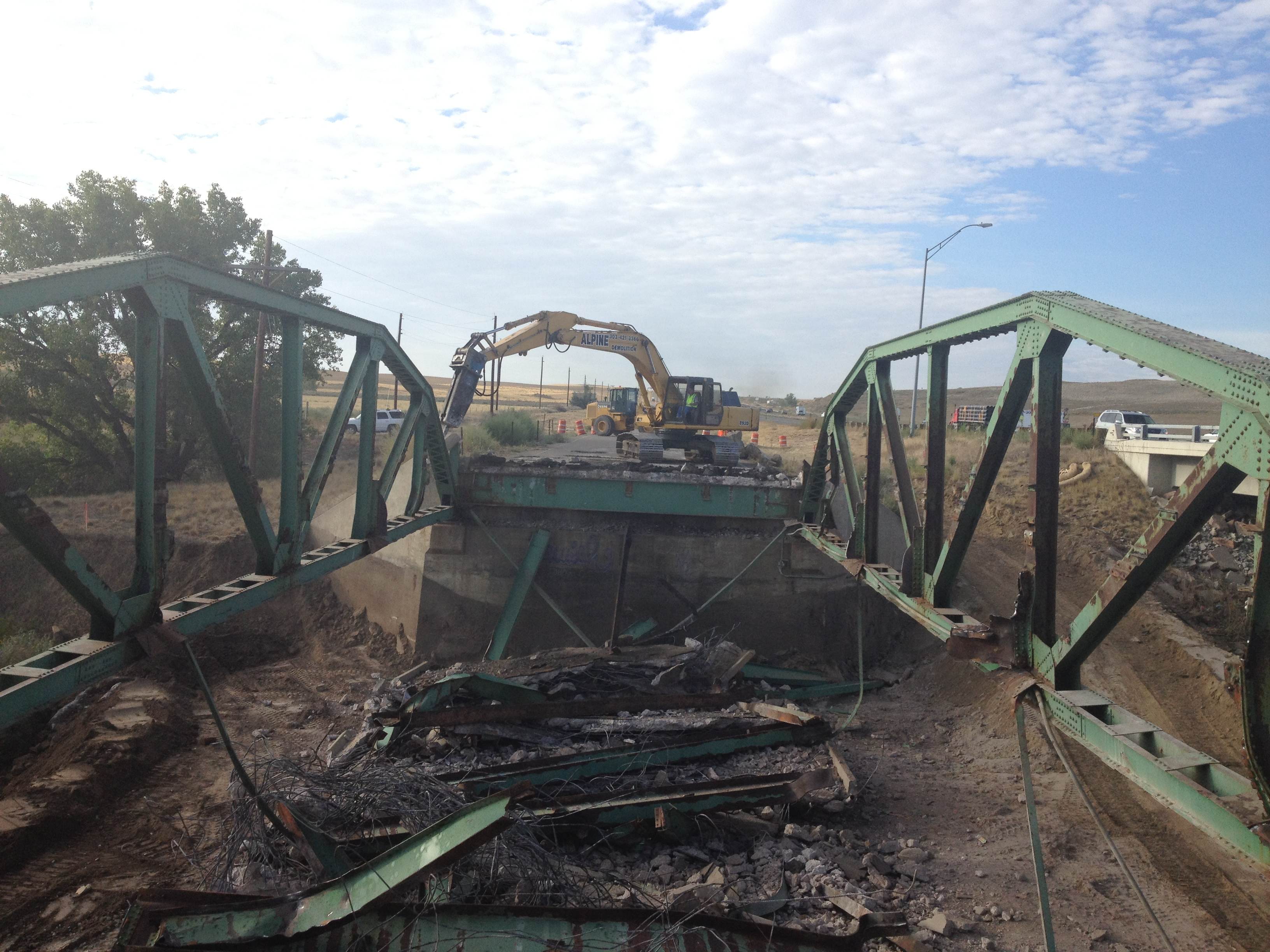 Alpine Demolition was hired to do the demolition of the former Berthoud Bridge located at the I-25 and Berthoud exit. Alpine used high reach excavators with a hammer to remove the bridge. All the steel from this bridge was recycled. Alpine hit major obstacles with high winds but was able to finish this project on time and within budget.