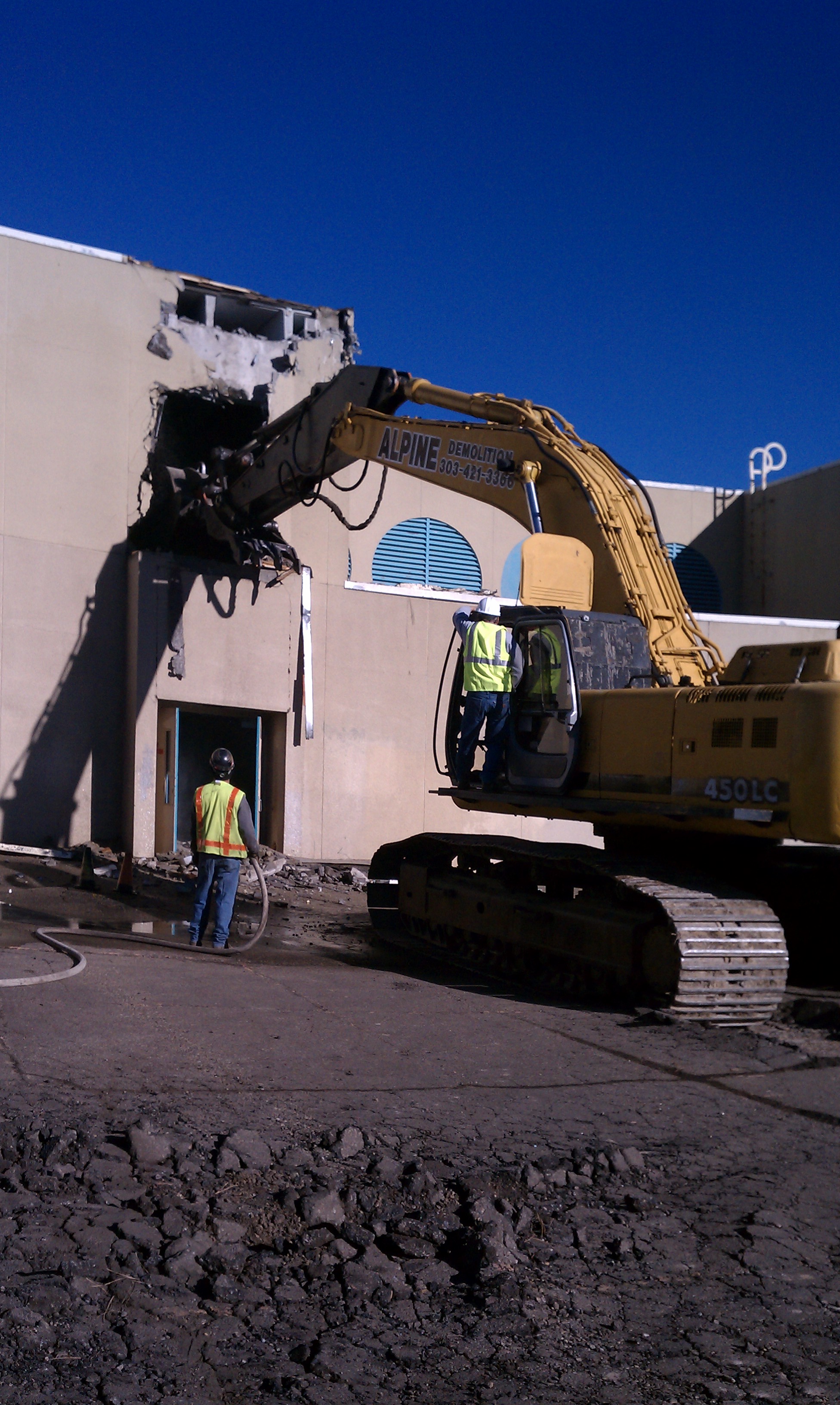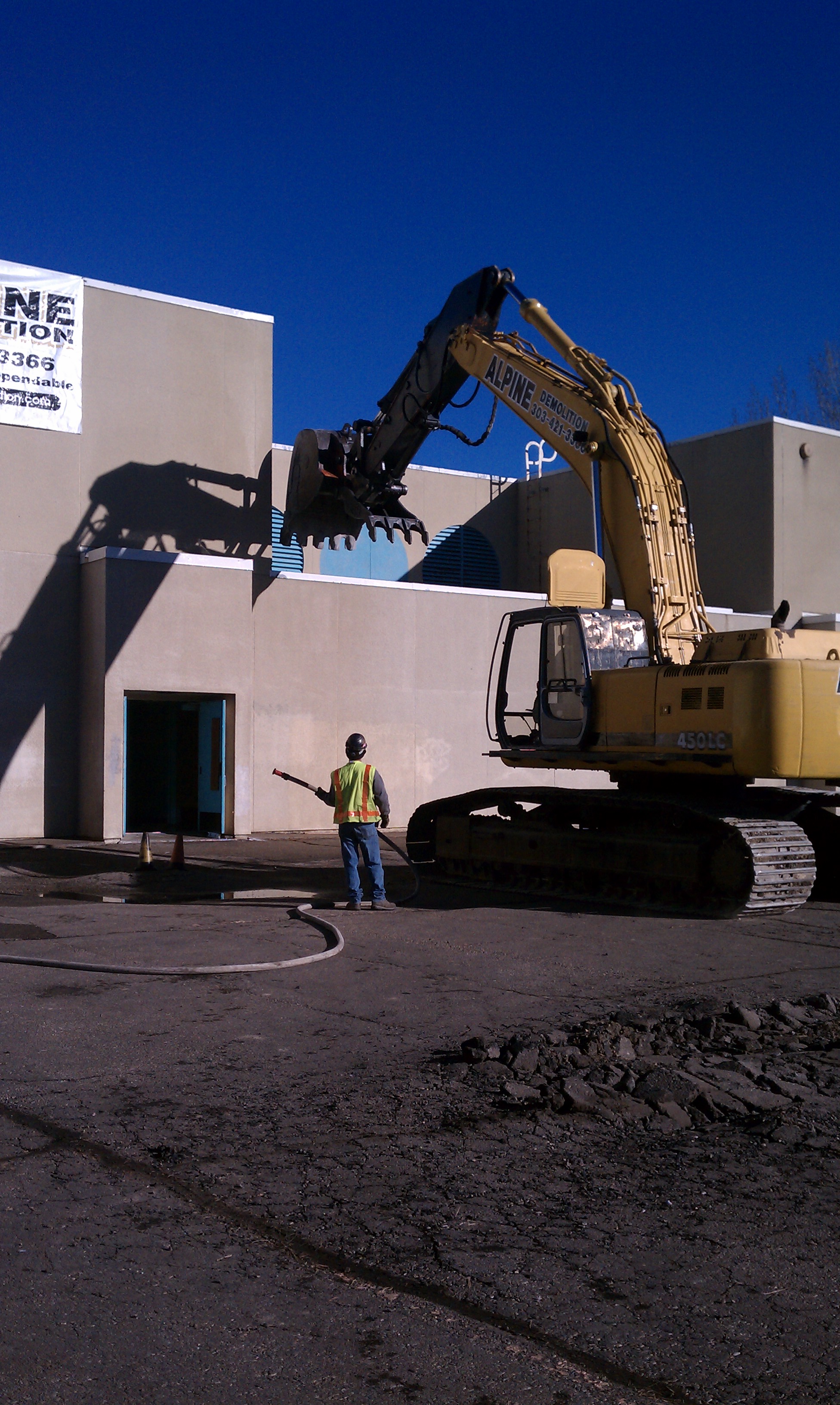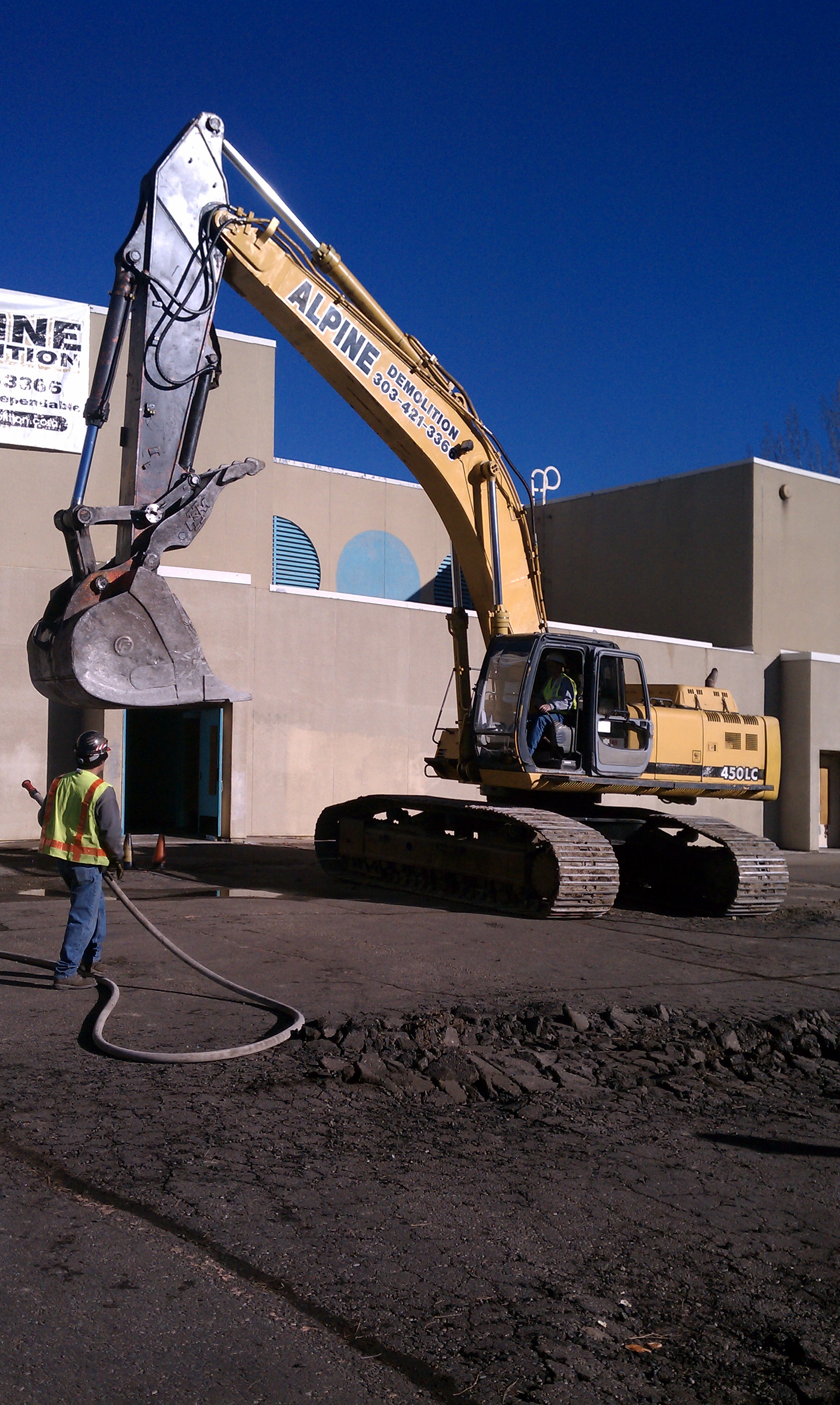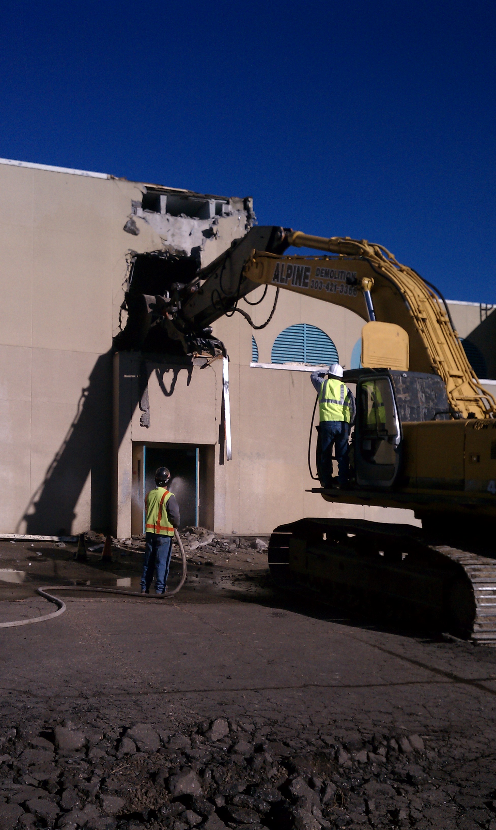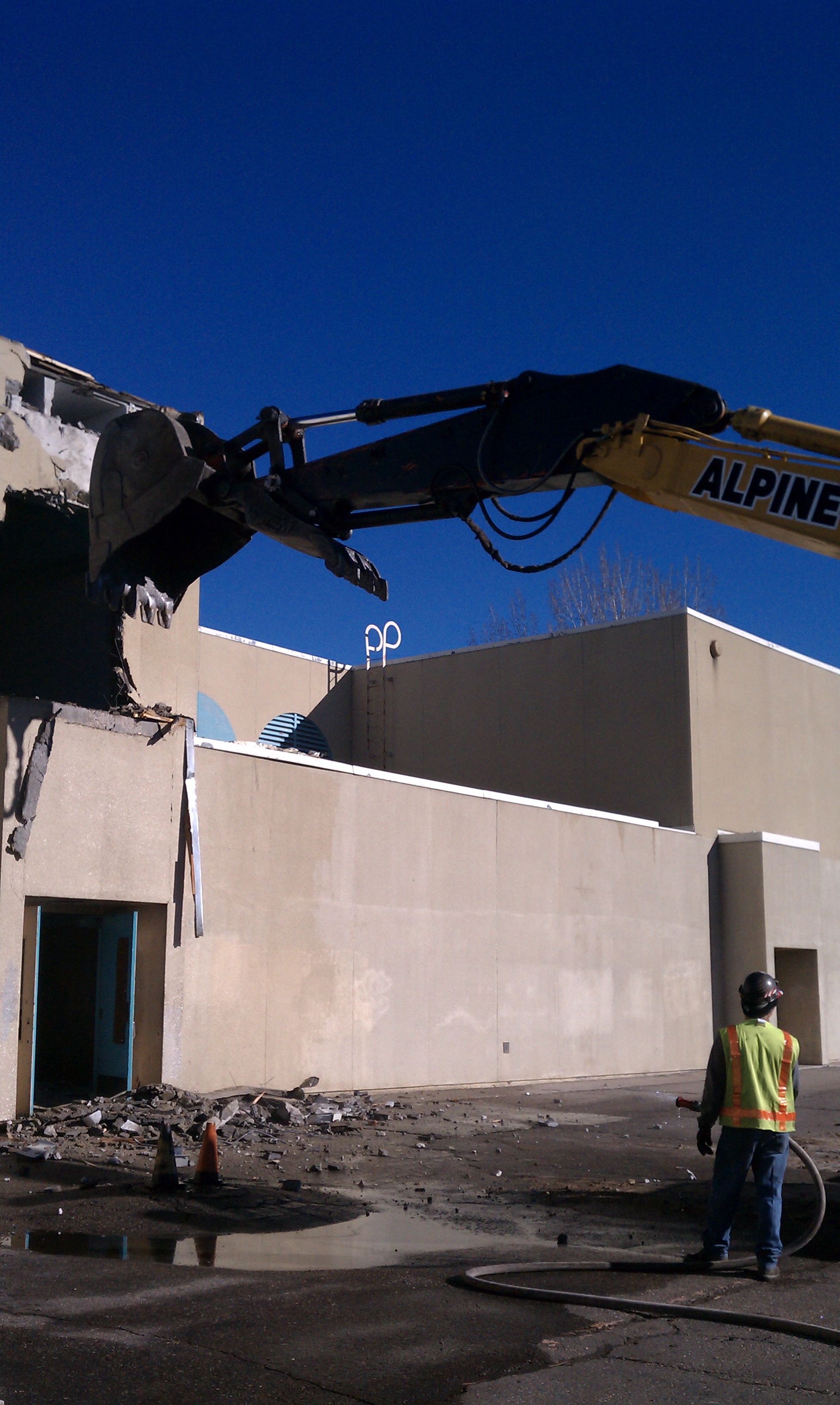Alpine Demolition was hired to do the demolition of the former Gove Middle School located between two major intersections in Denver, Colorado. Alpine was contracted byNational Jewish Hospital to perform the demolition so they can expand it to a parking area. Within our scope of work, we also need to do the removal of a pedestrian bridge which crosses Colorado Blvd. Alpine removed the bridge in the middle of the night and had to close Colorado Blvd down for four hours. Alpine reached a recycling rate of 80% on this project and encountered many weather delays due to high winds and snow.