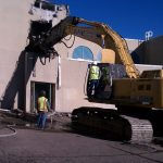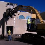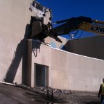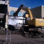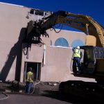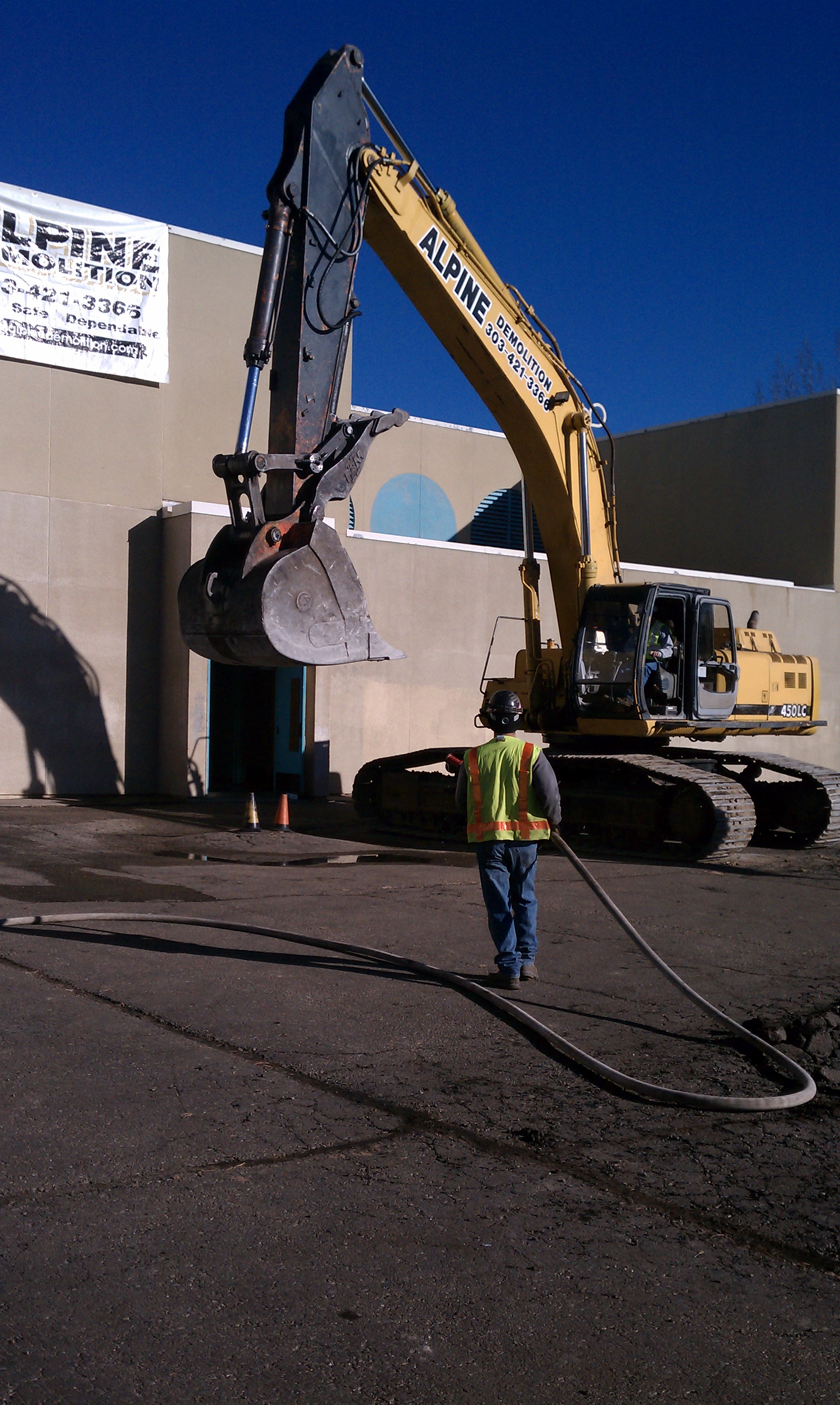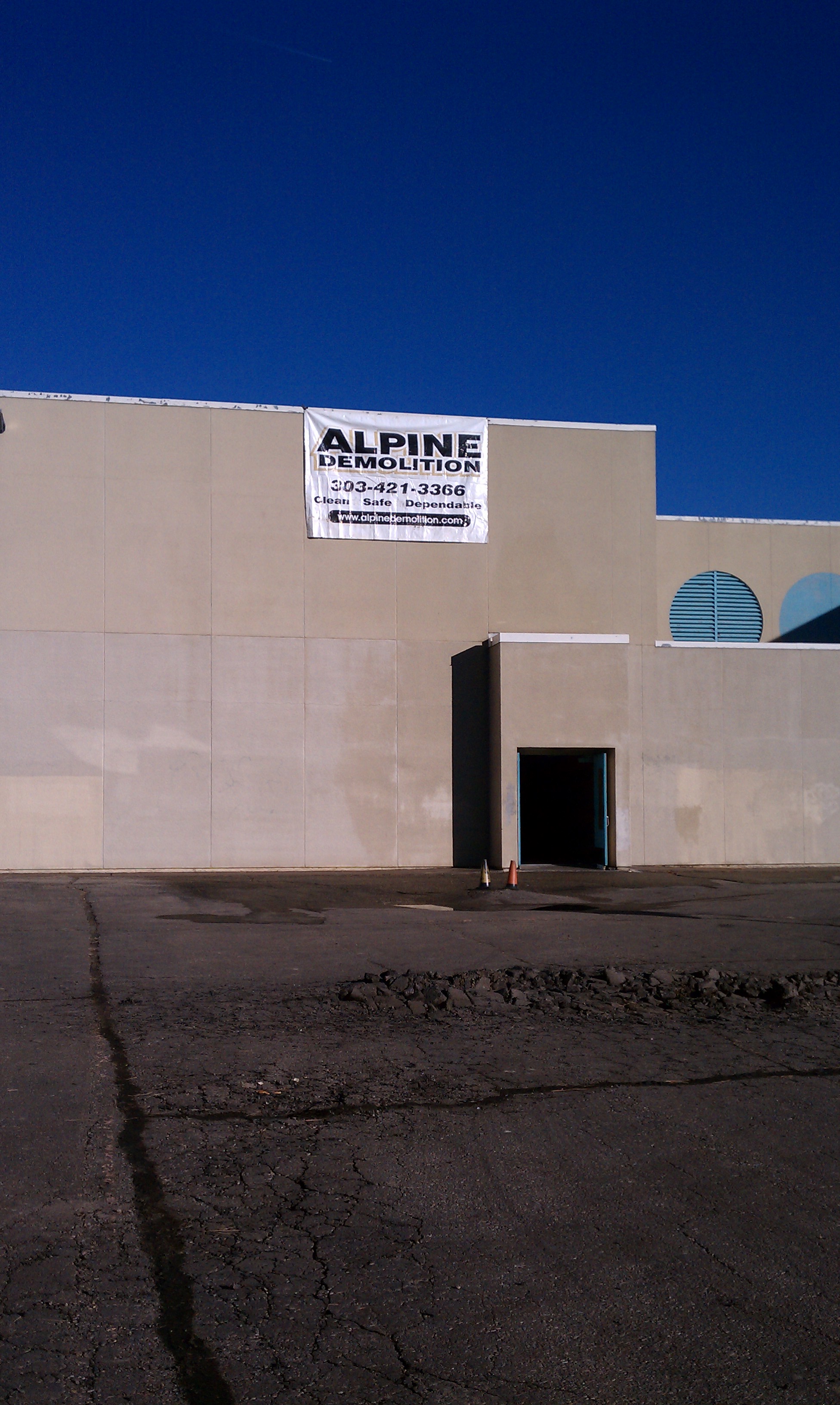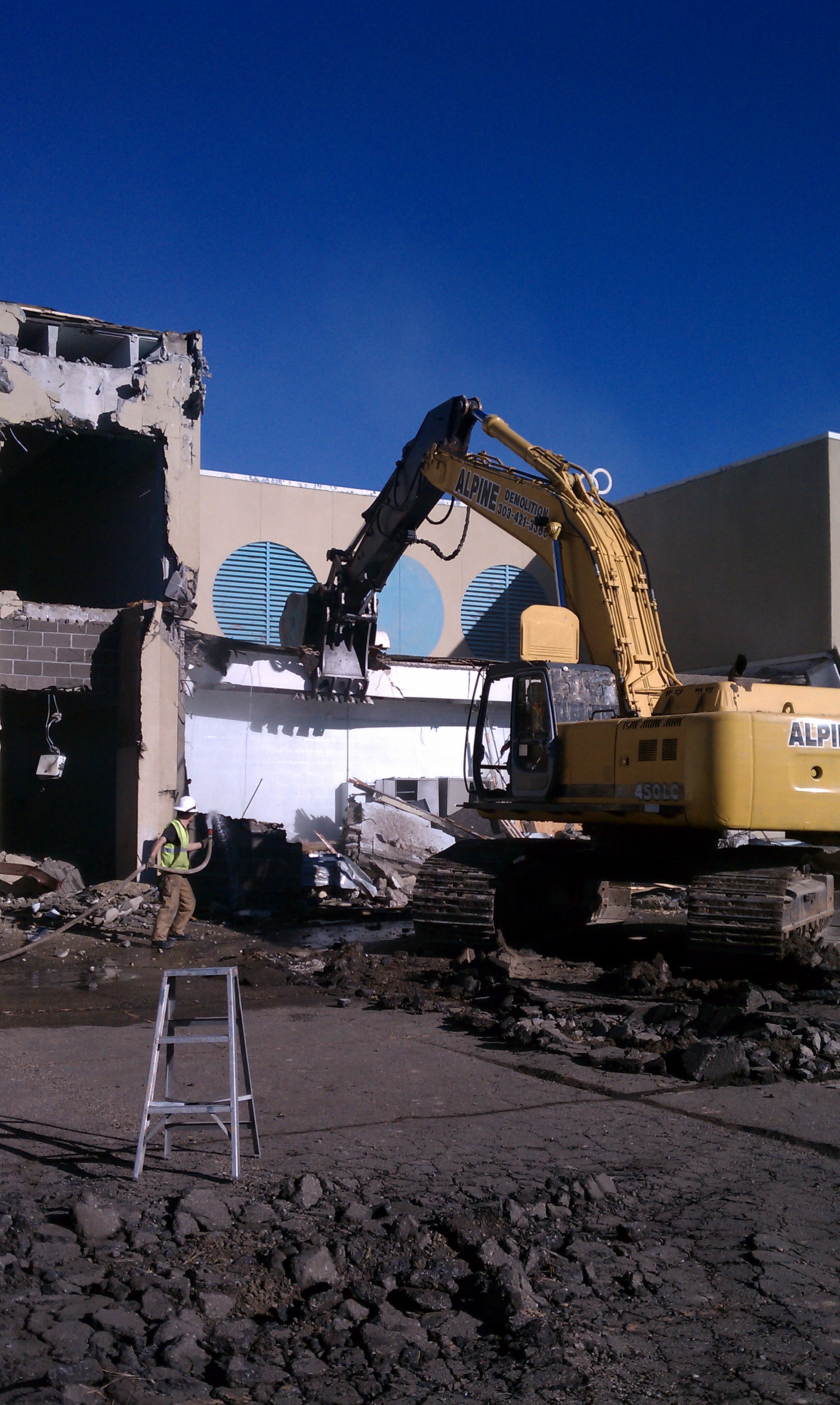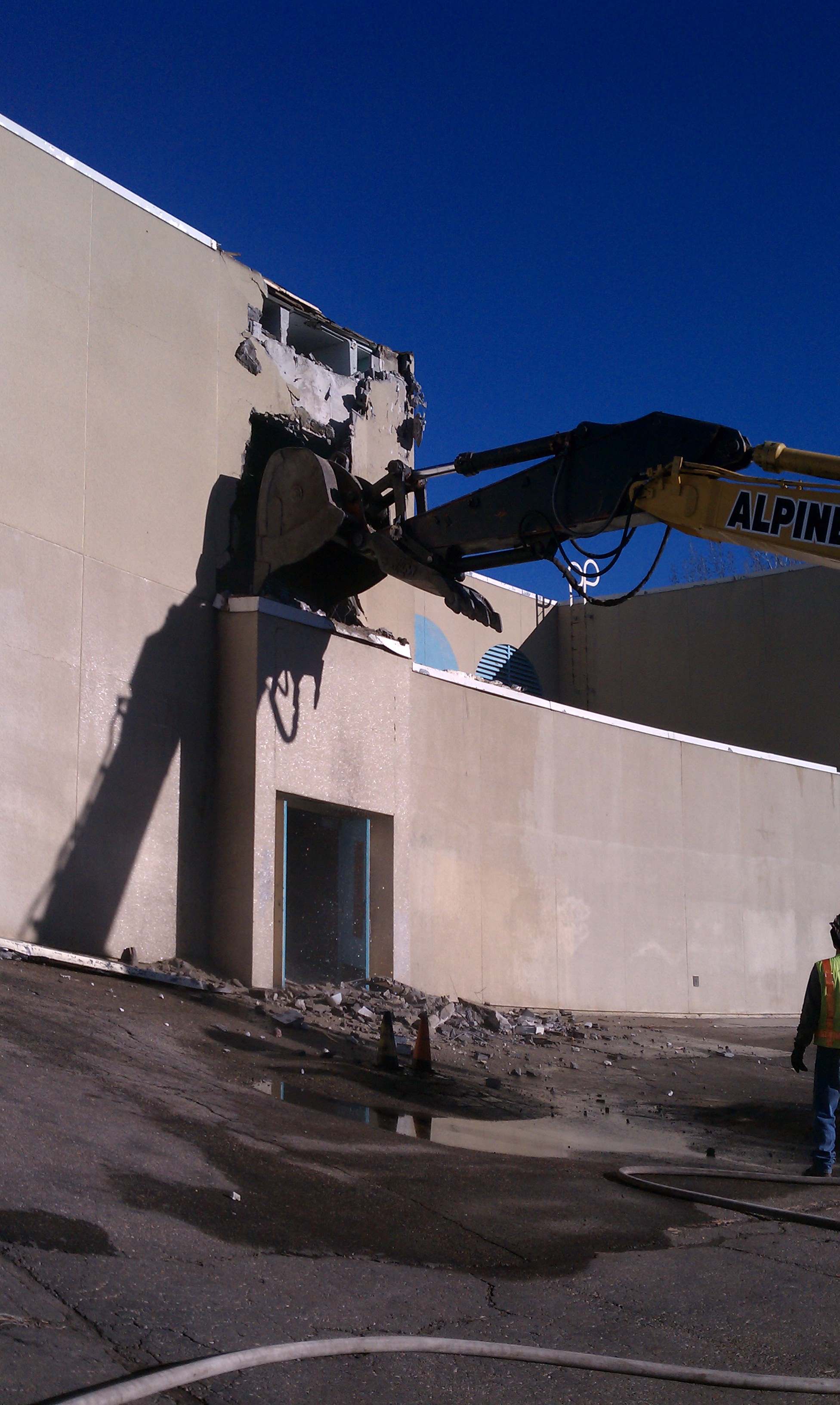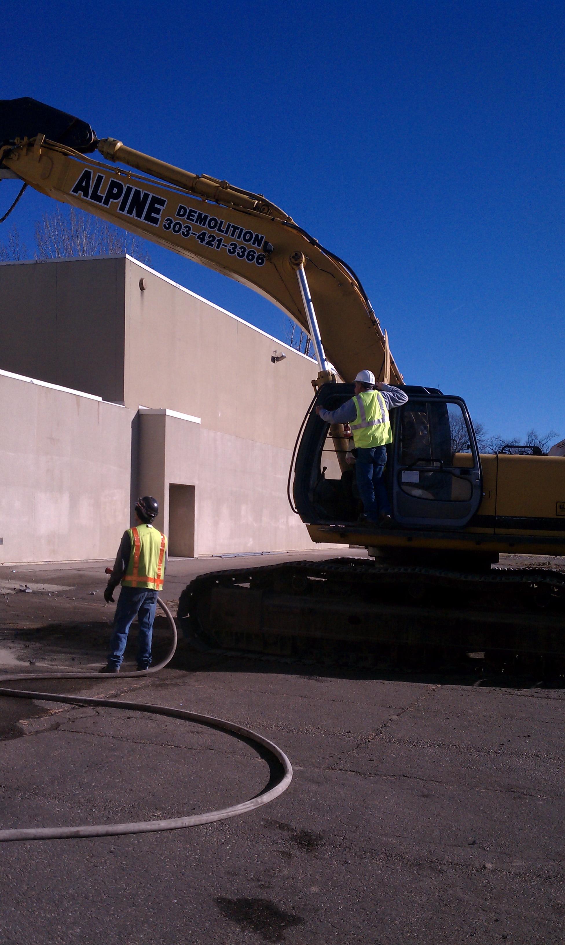 Alpine Demolition was hired to do the demolition of the former Gove Middle School located between two major intersections in Denver, Colorado. Alpine was contracted byNational Jewish Hospital to perform the demolition so they can expand it to a parking area. Within our scope of work, we also need to do the removal of a pedestrian bridge which crosses Colorado Blvd. Alpine removed the bridge in the middle of the night and had to close Colorado Blvd down for four hours. Alpine reached a recycling rate of 80% on this project and encountered many weather delays due to high winds and snow.