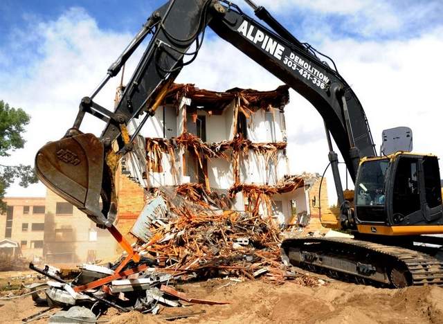 Alpine Demolition was tasked the demolition of the former Lory Apartments located on the Colorado State University campus in Fort Collins. The building, which was home to about 100 students, will be replaced by one that can accommodate more than 600 students. Alpine Demolition is expected to reach a recycling rate of over 80% on this project and is recycling all possible aspects of this project from the wood, concrete, steel, and brick.