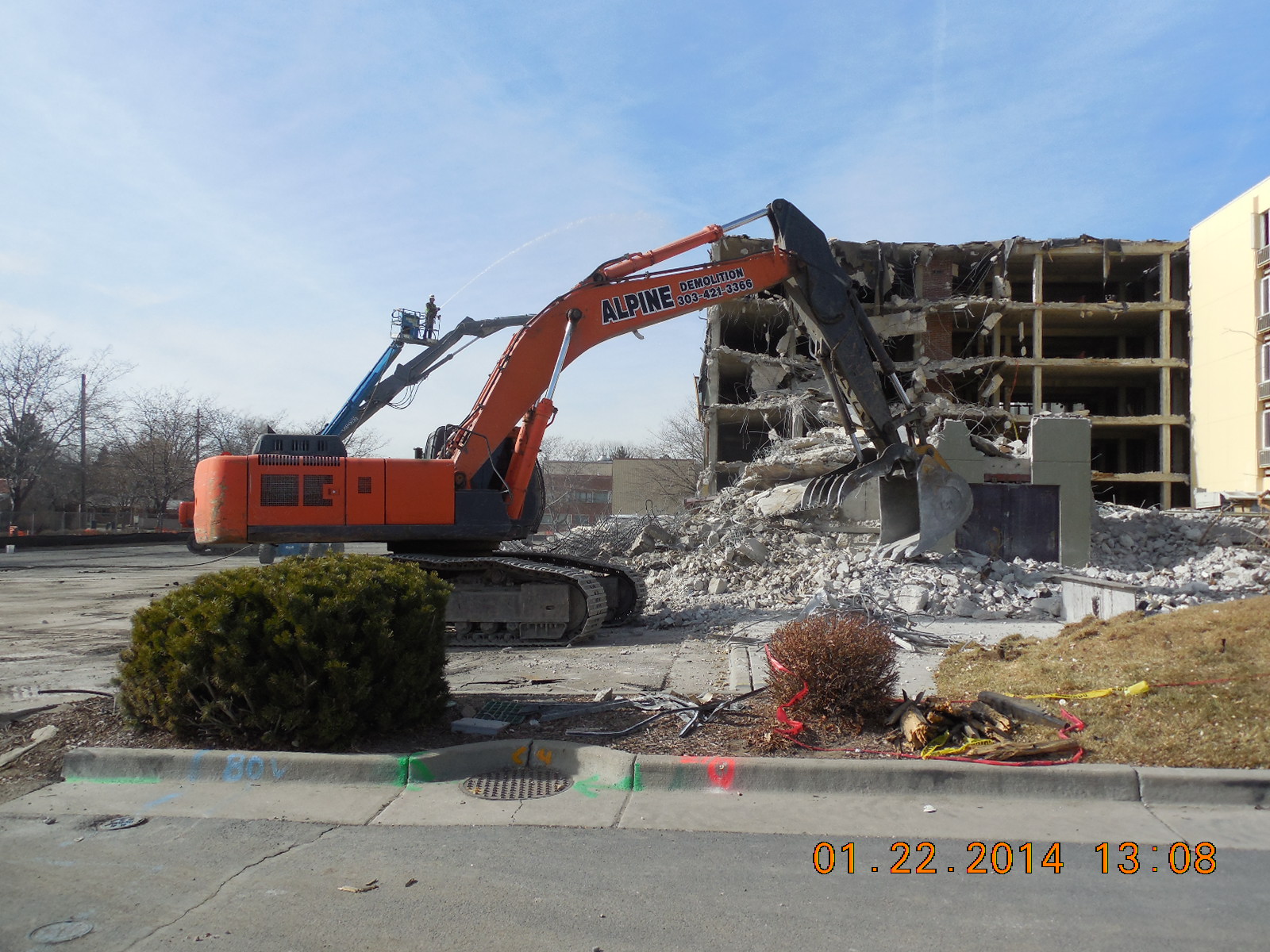 Alpine Demolition was hired to conduct the demolition, transportation, recycling, and disposal of an existing five-story apartment/residential structure of approximately 6,534 square feet located at 5785 East 8th Ave in Denver, Colorado. Alpine is committed to the use of recycling, 90% of the buildings will be recycled with the steel and aggregate to be reused. This project was completed on time, within budget, and without any safety violations.