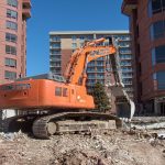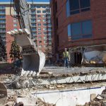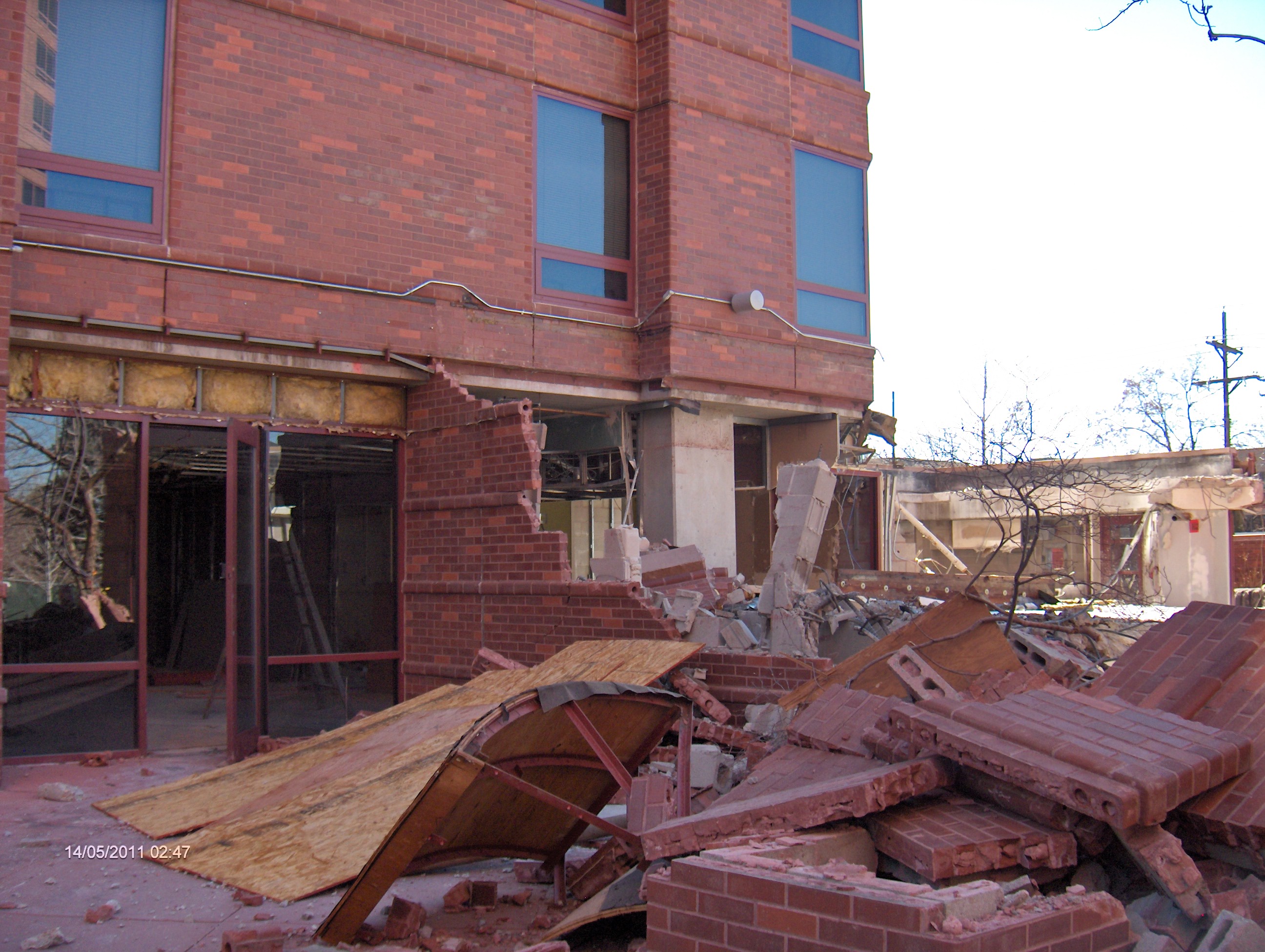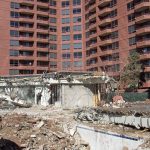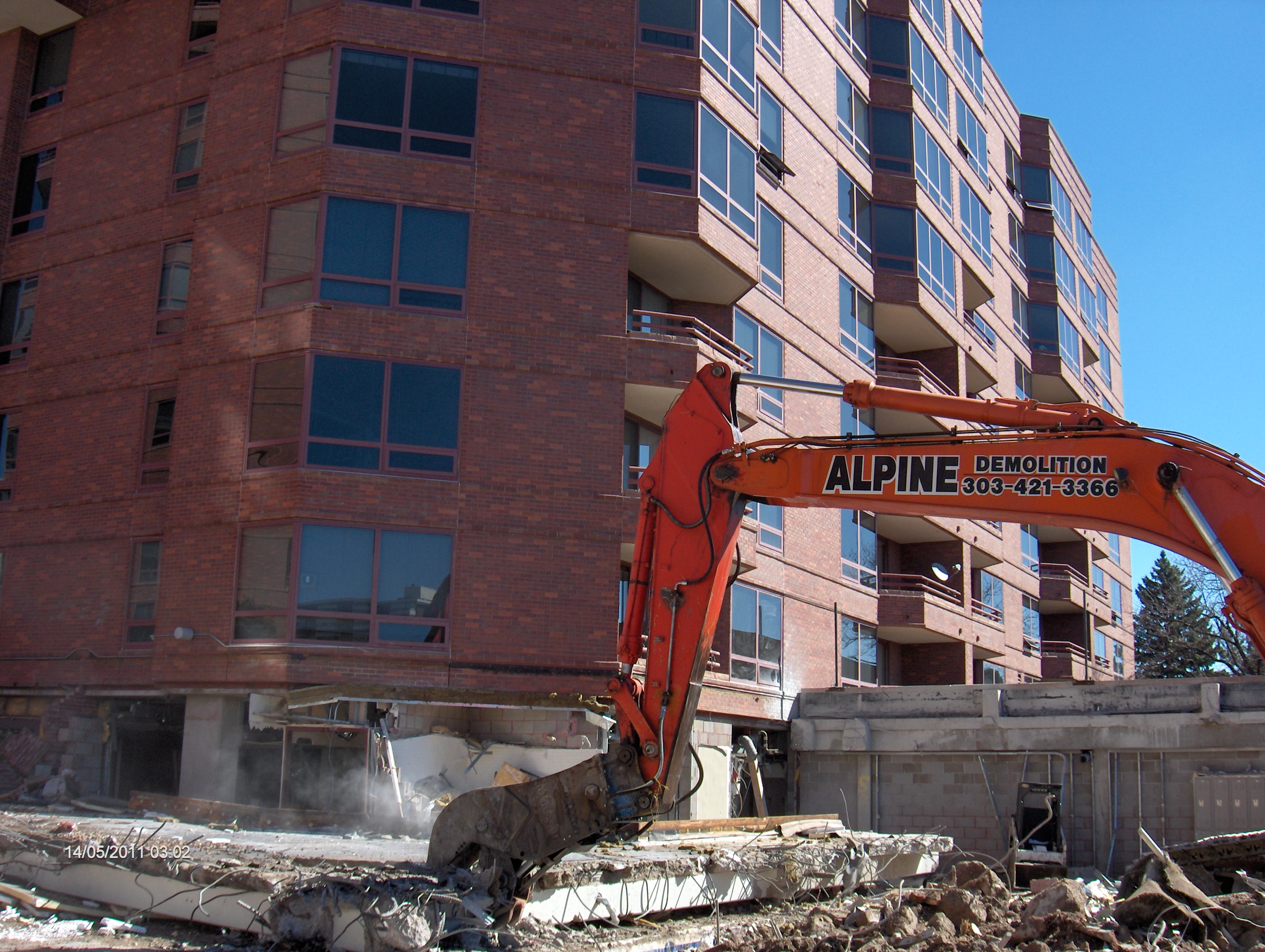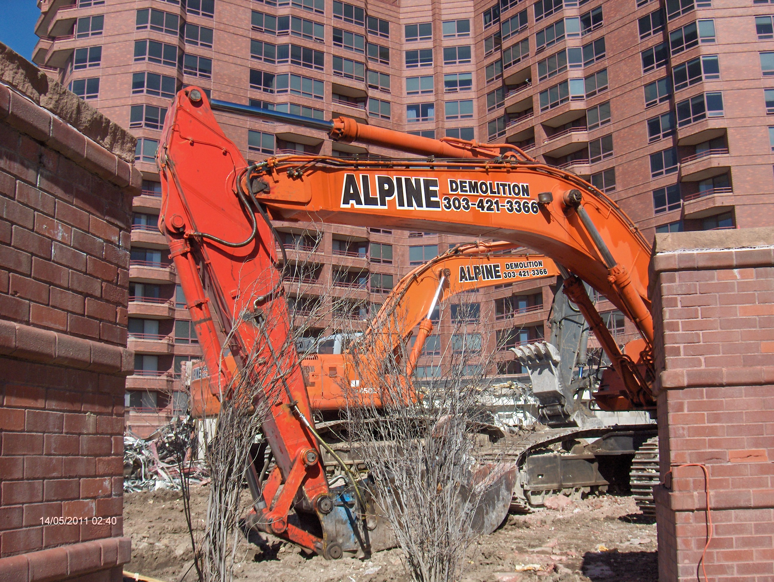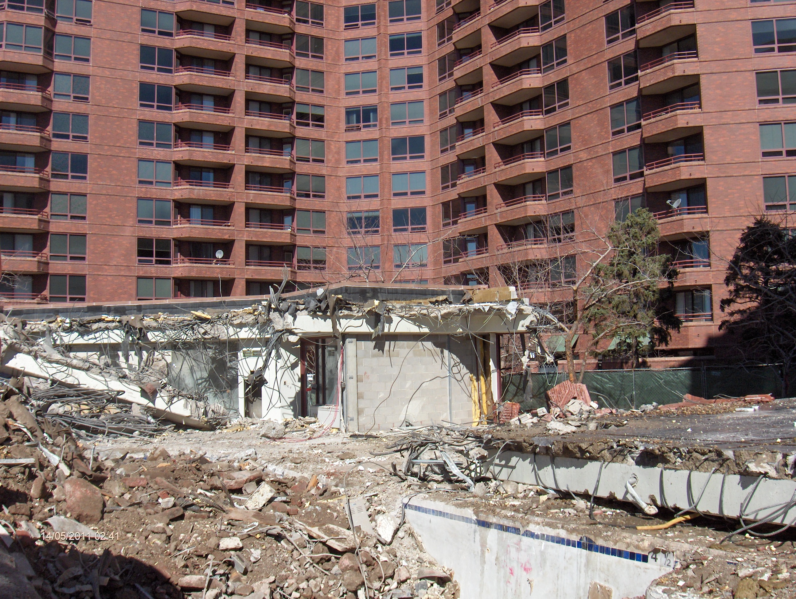 Alpine Demolition was hired to do the demolition, transportation, and disposal of existing one-story pool building and swimming pool as well as interior and exterior demolition at the ground floor of the existing tower north of grid line. Essentially Alpine was responsible for the removal of all hard surfaces including sidewalks. Alpine worked in difficult weather condition such as high winds and some snowfall but finished this project on time and within budget. Alpine had a 99% recycling rate on this project with the concrete and all the materials that we were able to salvage.